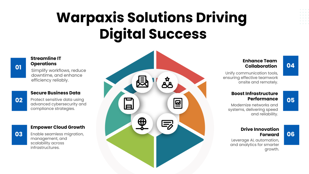 Warp Axis drives digital transformation by integrating advanced technologies, optimizing processes, empowering teams, enabling sustainable innovation, unlocking competitiveness, and helping organizations scale globally through smart, tailored, future-ready IT solutions.